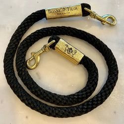 At the very height of opulence; you'll find our luxe braided leash. With 4' of our 5/8' premium double braided nylon; and 2 genuine leather branded foil sleeves with solid brass swivel snaps; you'll be the envy of every sidewalk and dog park! Collect all 5 très chic colors for perfectly coordinated style: Black (with black leather); Black (with gold leather); Brown; Silver; TanThis is the rope leash ONLY. To pair with the posh shearling grip; visit our bundle or other product listings - you won't regret it.
