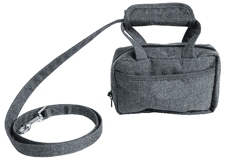 1.Features an all-in-one Zippered Purse with a Built-in Leash handle and Waste Bag Dispenser