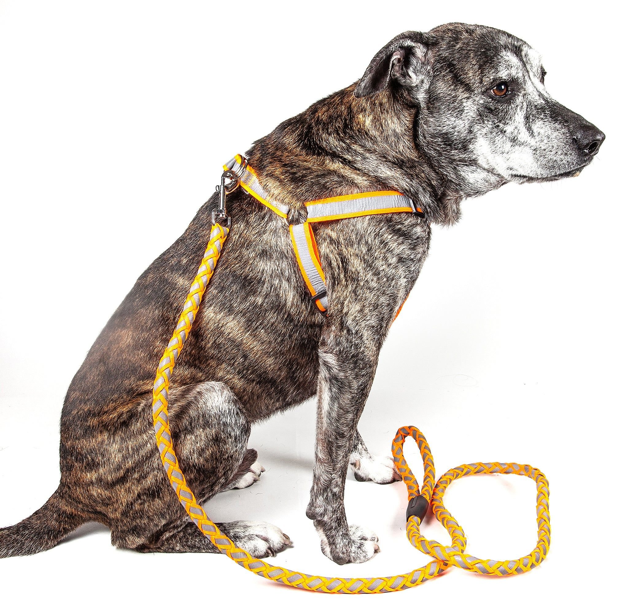 The 2-in-1 Reflective Stitched Easy Tension Adjustable Dog Leash and Dog Harness is composed of Heavy Stitched Nylon and Reflective PVC. Our Pet Harness is extremely safe during night walks as the entire leash and harness features reflective capabilities all around. Furthermore, our bright Neon-Colors offer additional visibility during daylight. Features Rubberized Tension at every connection placing less stress at every tug. Our Leash is Feet in length offering more movability than standard sized leashes and the Harness features Adjustable Nylon straps.